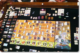 My favorite co-op game is another one from Cthulhlu Mythos. It is Arkham Horror. Here is a picture from the set-up! Playing time is 3-4 hours! What a game! Just as in Elder Sign the year is 1926 and players are investigators. The characters are the same between Cthulhu Mythos games. If there is a character you like you can play as that character in multiple games. In Arkham Horror investigators are exploring a city and trying to prevent portals from opening and fighting otherworld monsters.